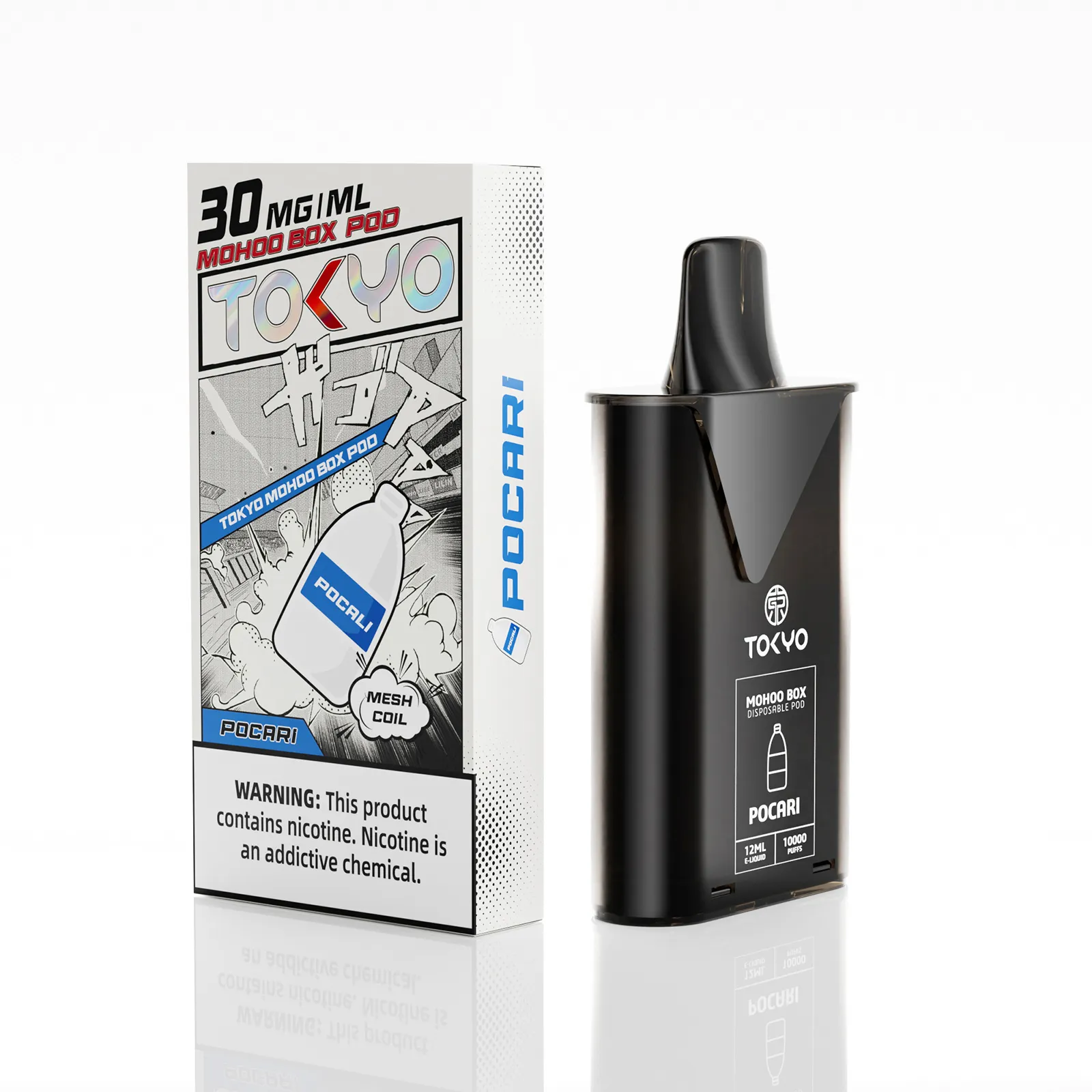 東京魔盒電子煙煙彈採用植物甘油與丙二醇基底,搭配高純度尼古丁鹽,容量 12 mL、尼古丁強度 30 mg/mL(3%),搭載 1.0Ω 鋼網棉霧化芯,設計為一次性 pod,約 10,000 口,吸引力持久。